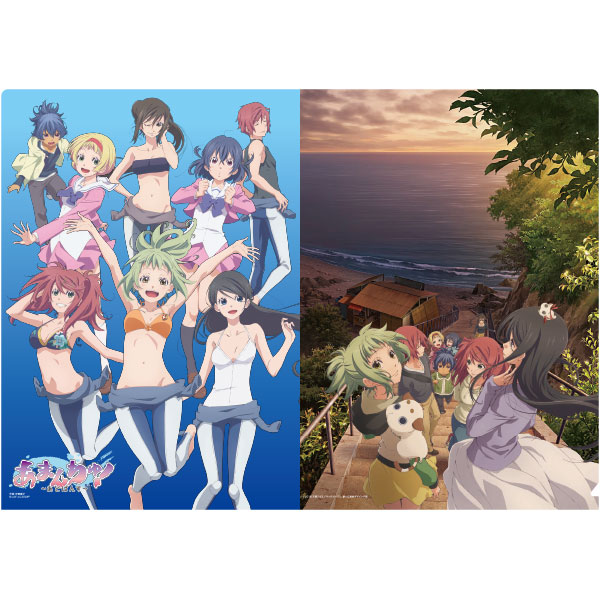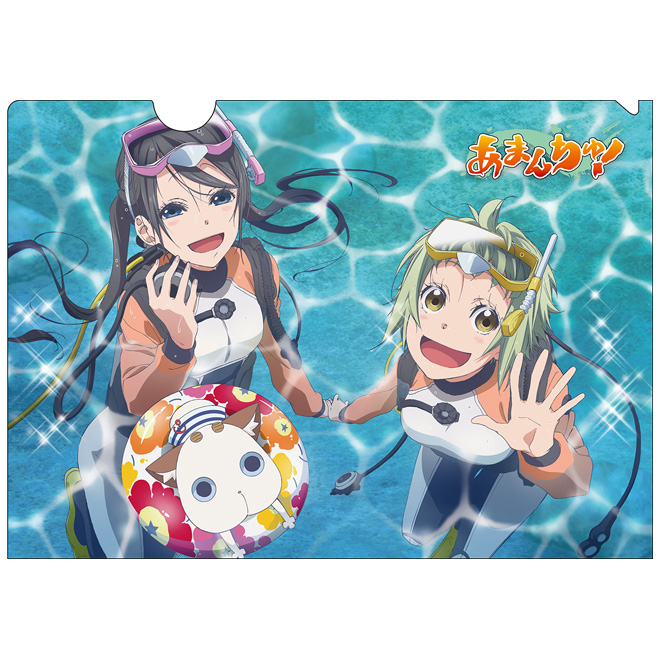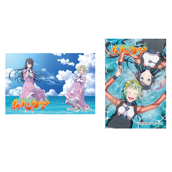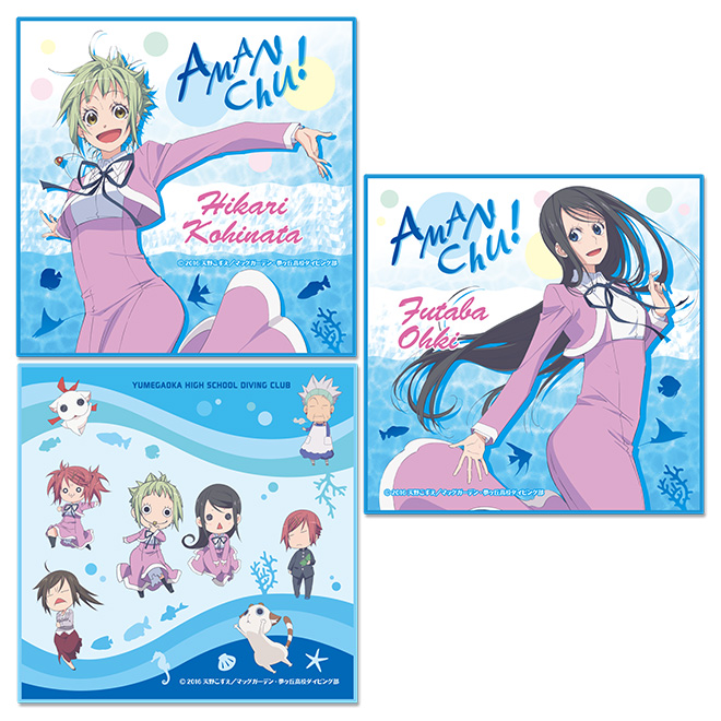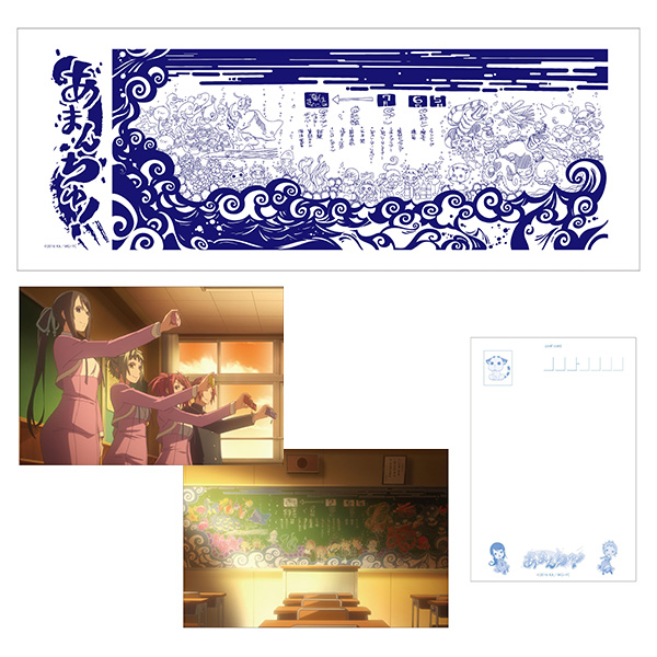 第5話のダイビング部緊急ミーティングで部員の面々が黒板に描いたイラストを用いた手ぬぐいです。写真を撮る4人とそのイラストの場面写真を用いたポストカード2枚付き!