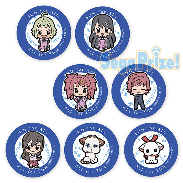 セガプライズオリジナルデフォルメイラストを使用した「小日向光」「大木双葉」「二宮愛」「二宮誠」「火鳥真斗」「ちゃ」「お姫」の缶バッジです!