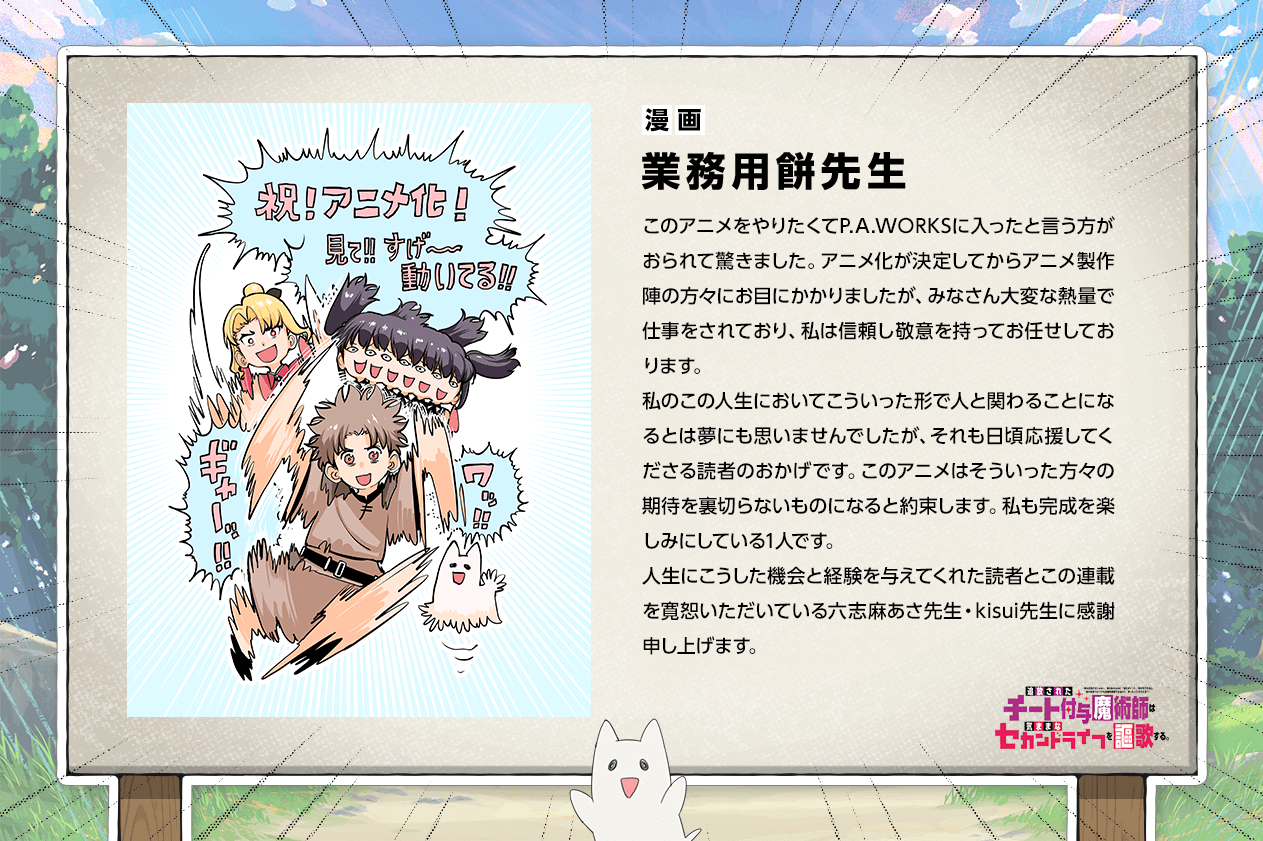 アニメ『追放されたチート付与魔術師は気ままなセカンドライフを謳歌する。 ~俺は武器だけじゃなく、あらゆるものに『強化ポイント』を付与できるし、俺の意思でいつでも効果を解除できるけど、残った人たち大丈夫?~』