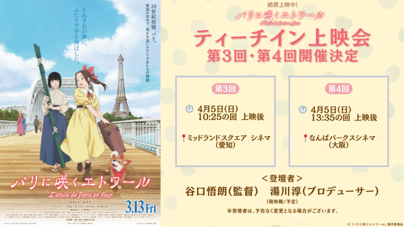 皆様の応援の声が多く届きはじめ、感謝の気持ちも込めまして、『パリに咲くエトワール』ティーチインの追加開催の詳細が決定しました!