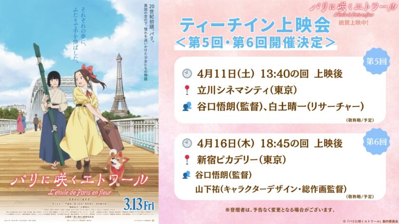 皆様の応援の声が多く届く中、感謝の気持ちも込めまして、『パリに咲くエトワール』ティーチインの追加開催の詳細が決定しました!