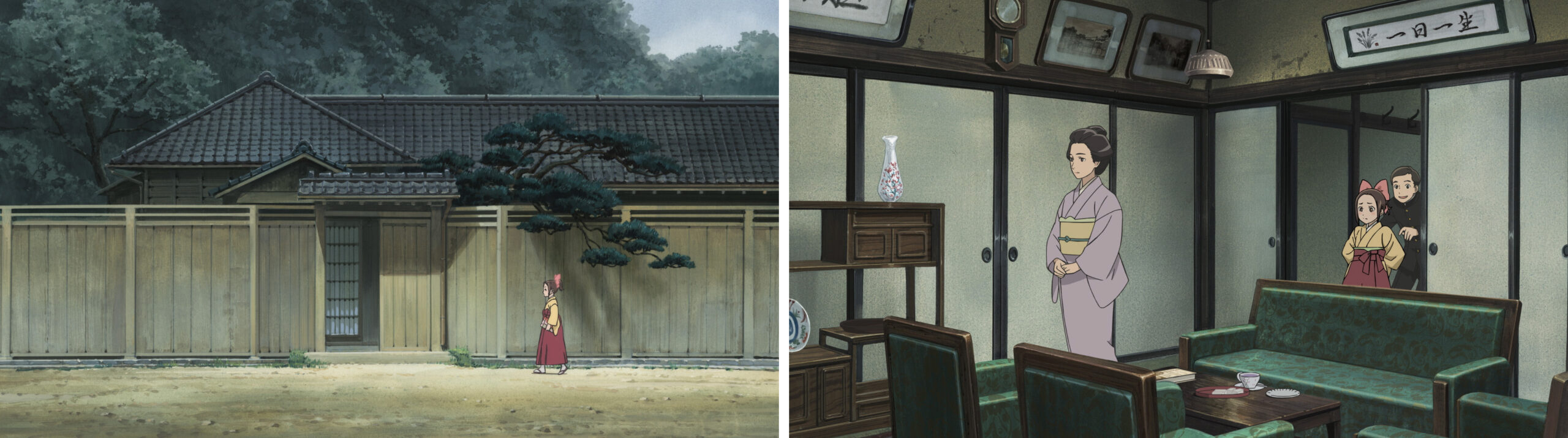 白土さん「継田家ですが、高田馬場の周辺と設定しました。明治の高田馬場は1910年(明治43年)に鉄道院山手線「高田馬場駅」が開業したばかりで、落合崖線沿いには金持ちの別邸などもある自然を残した邸宅街。家のモデルは文豪・夏目漱石が晩年に住んだ邸宅で、特に継田父がいる部屋は、門下生が出入りしたとされる漱石の書斎「漱石山房」などを参考にしています。しかし、和室に洋式の家具が配置された和洋折衷的なレイアウトにするため、細かい部分は複数の幕末、明治の建築を組み合わせたものになっております。」