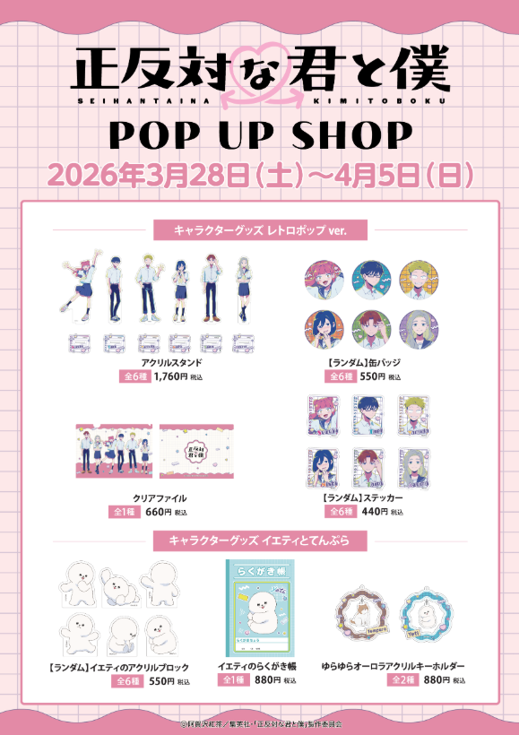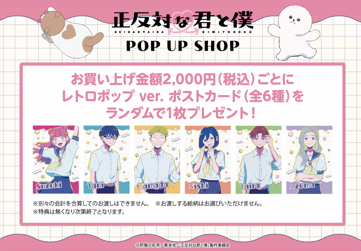 そよらニュータウンとTVアニメ「正反対な君と僕」とのコラボ期間中でのPOP UP SHOPの実施詳細が決定いたしました!